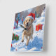 Labrador Dog Running in Snow with Christmas Hat Square Wall Clock