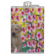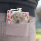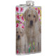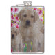 Pictured on a blossom background are three Labrador puppies in a oil paint design