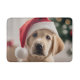 Cute Labrador Retriever puppy wearing a Santa hat.