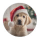 Cute Labrador Retriever puppy wearing a Santa hat.