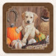 Labrador Retriever Dog & Pumpkins Brown Square Paper Coaster