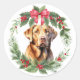 Labrador Retriever Dog Red Bow Holly Wreath Classic Round Sticker