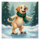 Labrador Retriever Ice Skating Christmas Painting Poster