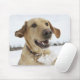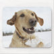 Labrador retriever jumping through deep snow mouse mat