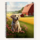 Labrador Retriever yellow puppy on Farm with barn and flowers. Working, herding, hunting farm dogs. Add this image to other products. Add your own text too. Change background colour.