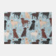 Cute Labrador Retriever dogs with black, chocolate, red and yellow coat colours. Lab dogs with paw prints and dog bones pattern.