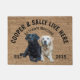 Labrador Retriever Personalised Dog lover welcome doormat. This welcome mat can be personalised with your dog’s name, the slogan can also be changed or you could use a picture of your own dog (make sure it's transparent). Text reads: Cooper & Sally live here…. All treats welcome