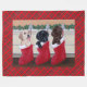 Labrador Retriever Puppies Christmas Painting Fleece Blanket . Whimsical and cute Labrador Retriever Painting painted by Naomi Ochiai from Japan. All of three colours of Black Labrador Puppy and Chocolate Labrador Puppy and Yellow Labrador Puppy are painted in the picture. They are playing in their red Santa Stockings hanging from the well decorated fireplace.