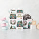 A teal blue pickup truck carries a decorated Holiday tree and gift packages on this cute gift wrapping paper. An adorable yellow Labrador Retriever puppy wears a Santa Claus hat and peeks out over the tailgate. A wooden sign on the back bumper says "Christmas Cheer". Your monogram is enclosed within a pretty pine cone and red berry wreath, and stylised gold text says "Merry Christmas". You may also customise the "from the (Name) text.
