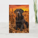 Embrace the rustic charm of Thanksgiving with our stunning card showcasing a Labrador Retriever frolicking in a harvest field as the sun sets in the background. Share the warmth and beauty of the holiday with your loved ones through this exquisite card.