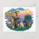 The patron saint of animals and a loved figures that crosses denominational lines, St. Francis is shown here with two Labrador Retrievers. The figure of Saint Francis itself was adapted from Giotto's 14th century masterpiece and a new background was created by Jean Fitzgerald
