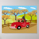 Labradors and Red Truck Fall View Poster