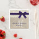This custom paper napkin is perfect for your rustic or vintage themed wedding reception. Features a burlap and lace print background with ribbon accent in your wedding colours. Contact us for custom colour requests at no additional cost.