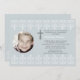 A soft blue background with intricate white transparency borders and a round photo window. Suitable for any occasion. The cross can be dragged to any spot, made larger or smaller (+-) or eliminated making this a versatile invitation.