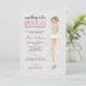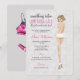 Give the bride-to-be a sexy lingerie shower with these chic invites featuring the bride in nothing but her heels and panties! Lace lingerie material background with bra and panty set on back with bride’s sizes. Multiple options available to customise the brides hair style, hair colour, and skin tone.