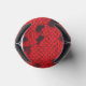 Colour photograph of black lace with a red background