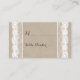 This is the coordinating place card for the Lace in White on Burlap wedding line. It is also available with ivory lace. Note: lace is a photo illustration.