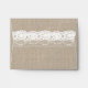 This is the coordinating envelope for the Lace in White on Burlap Wedding RSVP. The back flap of this burlap envelope is decorated with an illustrated, vintage white lace edge. Scroll down to see other items in this collection.