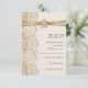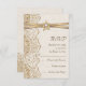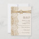 Elegant white lace, ribbon and flower on burlap wedding RSVP response/reply card featuring white lace on linen natural burlap or hessian with two crossed satin ribbons and flower in beige with metallic shine and a white jewel. Text in brown. Note that lace, burlap, flower and jewel are all “printed on” and not real fabric, gem or crystal. This elegant, shabby chic sophisticated and romantic design with a rustic essence is part of a wedding set and is perfect for a country chic or western spring, summer or fall/autumn wedding with a neutral colour palette.