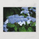 A magnificent blue lacecap hydrangea flower in full bloom. They are beautiful in natural landscape settings catching the eye with unusual form and colour.
