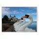 The swan boats outside the magnificently baroque Lacko Slott in Sweden.