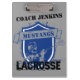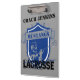 Lacrosse graphic design features a Lacrosse player, the words Lacrosse and a shield or emblem. Personalise this clip board with your favourite LAX players name, coaches name, statisticians, score keepers, team name and more. Great as a thank you gift, prize, or award.