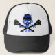 trucker hat that says any bros car to lax with a skull with 2 lacrosse sticks