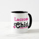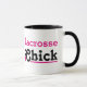 Lacrosse Chick. Vrouwelijke beker met de kleuren: roze paars en zwart. Voor een vrouw die van Lacrosse houd.