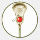 Artistic lacrosse Christmas holiday stickers featuring lax stick and ornament ball design for player, coach. lax teams and lacrosse sports fans.