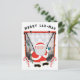Funny lacrosse Christmas card for lax player, team coach or sports fan.