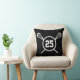 Black and white, personalised lacrosse player number throw pillow. White design on black background on one side, reverse black design on white background on the other side. Circle and crossed lacrosse sticks frame with your individualised number inside. Lacrosse player and team custom items.
