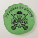 Lacrosse Design Round Pillow with customizable text and background color.