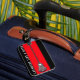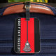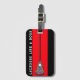 Creative lacrosse gear bag tag featuring lax stick art and funny quote on red background.