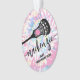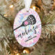 Lacrosse Christmas Personalised Photo Ornament with a Unique Girly Pink Tie Dye Design, custom-printed with her name, year, and your own text for the team name or player position, and add your own photo on the back.