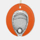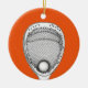 Lacrosse goalie ornament or award featuring goalkeeper stick on orange background. To personalise edit text to add name and otherwise customise.