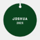 Lacrosse player keepsake gift ornament featuring lax sticks on game day. To personalise edit text to add green team player or coach's name and the year.