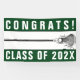 Creative lacrosse team banner featuring lax stick and congrats line design on green background. To customize edit text to add year.