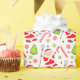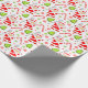 Creative girls lacrosse Christmas holiday gift wrap featuring Mrs. Claus lacrosse player, surrounded by peppermint candy and Christmas tree sugar cookies.