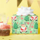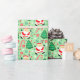 Fun lacrosse Christmas holiday gift wrap featuring creative Santa Claus lacrosse player surrounded by Christmas candy and cookies.