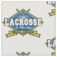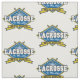 Blue and gold triangle sport logo featuring a crossed Lacrosse sticks with Lacrosse Is My Life text! Born to Play, Destined To Win yellow banner across the bottom! Great lacrosse player and fan gift!