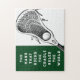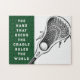 Funny lacrosse player puzzle gift featuring motivational quote and unique lax stick design.