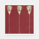 Creative lacrosse party or team game day event napkins featuring lax sticks design illustration on maroon background.