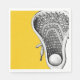 Unique lacrosse team party or event napkins featuring creative lax stick image on yellow background.