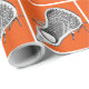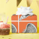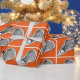 Creative lacrosse gift wrap or party decoration featuring lax stick on an orange background.