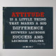 A motivational lacrosse poster, on ripped blue denim, with red and white lettering. (This inspirational lacrosse print is part of a series of 10 posters with lacrosse quotes in this denim design.) The lacrosse quote on this sports poster reads: "Attitude is a little thing that makes a big difference between lacrosse success and lacrosse failure." ~ Felicity Luckey