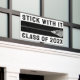 Creative lacrosse team senior night or graduation party banner featuring lax stick and motivational quote on black background. Edit text to add year.
