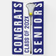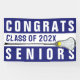 Girls lacrosse congrats banner featuring women's lax stick and ball illustration on a blue background. Edit text to customise for your lacrosse graduation party or team event, game day banner or school senior night.