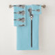 Unique lacrosse sports towel set featuring lax stick and ball design on light-blue background.