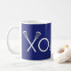 Mighty fine lacrosse sticks mug for player, coach or blue team sports fan featuring lax sticks xoxo design.