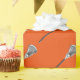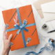 Unique lacrosse gift wrap or team party decor featuring lax stick and ball pattern on an orange background for player, party, coach or team sports fan.